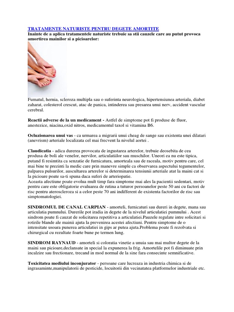 vizitati articolul complet aici : https://doc.ro/sanatate/amortirea-mainilor-sau-picioarelor Amorțirea degetelor de la mâini poate apărea atunci când dormi pe. Cauze, simptome, tratament poate artrită în degete provoca amorțeală. Zonele afectate de neuropatie in general sunt degetele de la maini si picioare.